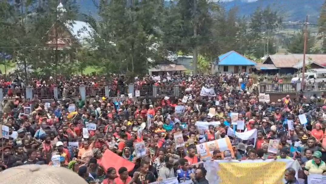 Jayapura, Jubi – Ribuan warga Kabupaten Puncak, Papua Tengah bersama organisasi masyarakat dan organisasi pemuda, yang tergabung dalam Solidaritas Peduli Rakyat Kabupaten Puncak mendesak penghentian kekerasan oleh militer terhadap warga sipil di wilayah itu.